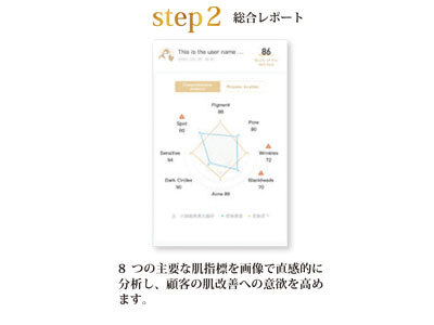8種類の肌トラブルを検出し、ワンクリックでプロフェッショナルな肌測定レポートを自動生成します。